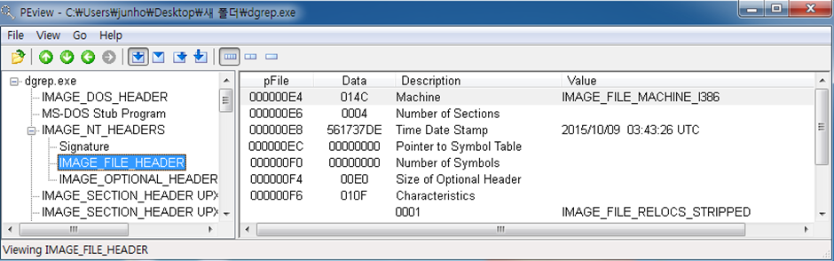 => PE 구조 확인을 통해(코드에 관한 정보, 애플리케이션의 유형 등) 파일의 구조를 확인하여 악성코드 감염 여부를 확인해야 함.