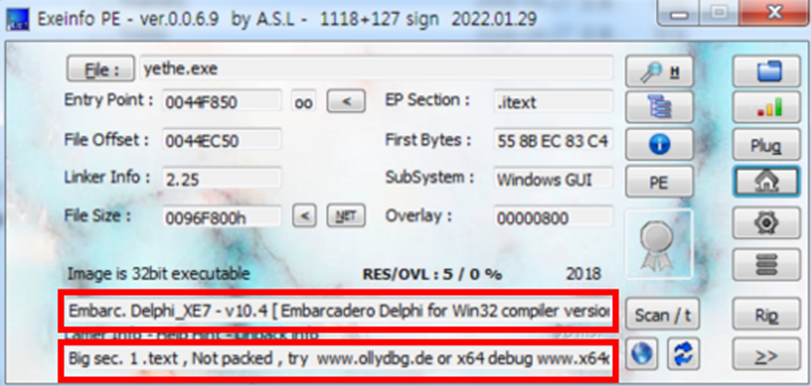 - 언패킹된 파일일 경우 어떤 언어로 만든 파일인지 추측할 수 있다