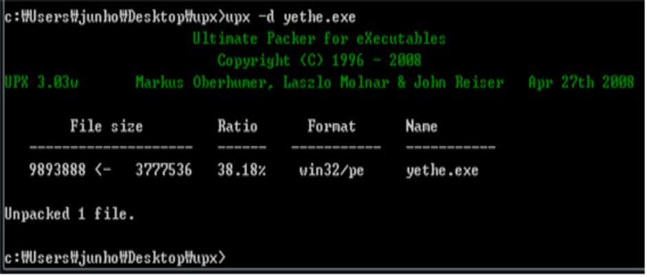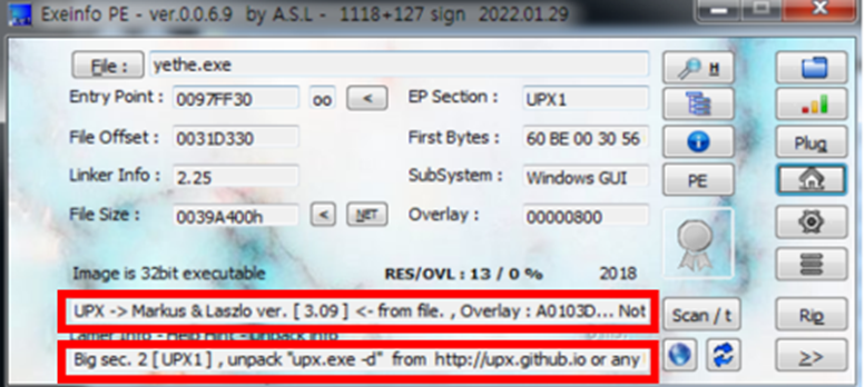 - 패킹 기법에 따라 언패킹에 실패할 수 있기 때문에 여러 언패킹 도구를 사용해보는 것이 좋다