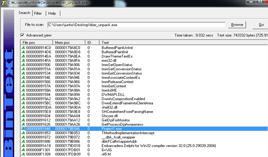 - 언패킹한 파일을 분석하면 평문으로 출력되어 문자열을 통해 악성코드들의 정보를 알 수 있다