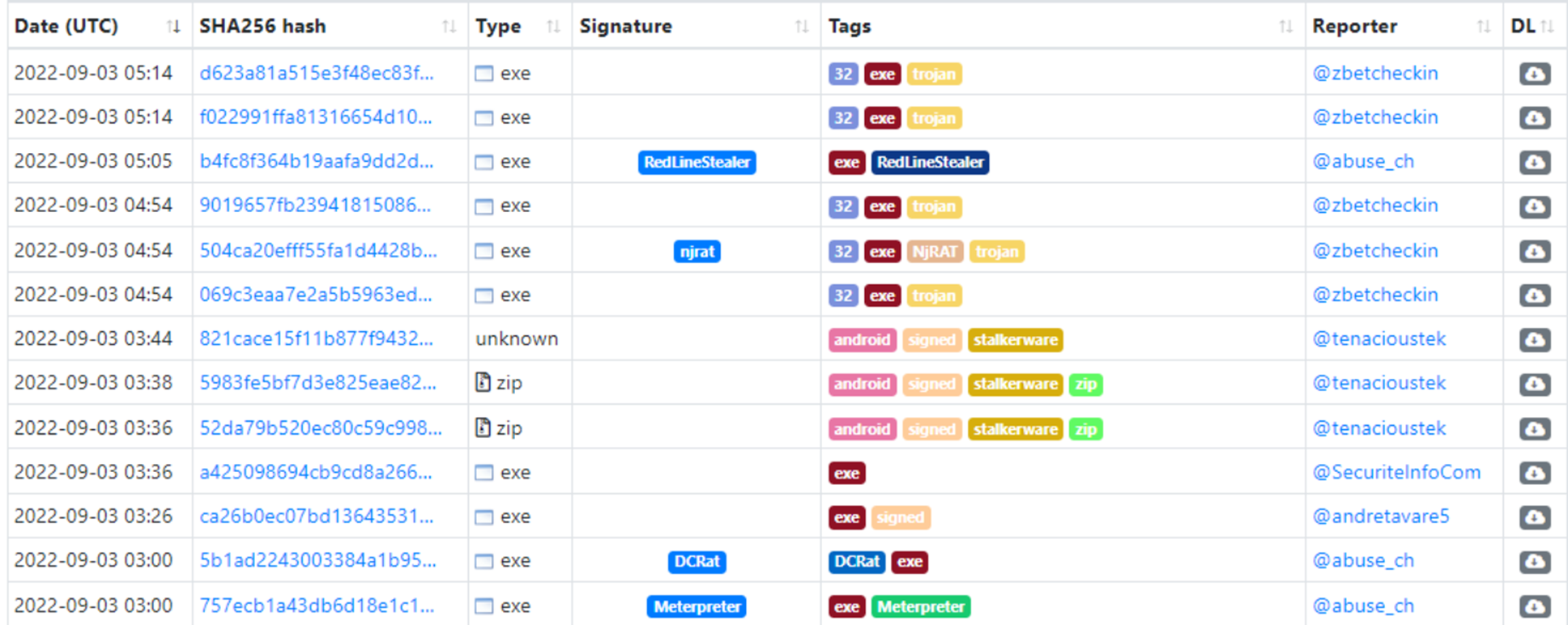 1. MalwareBazaar (https://bazaar.abuse.ch/)